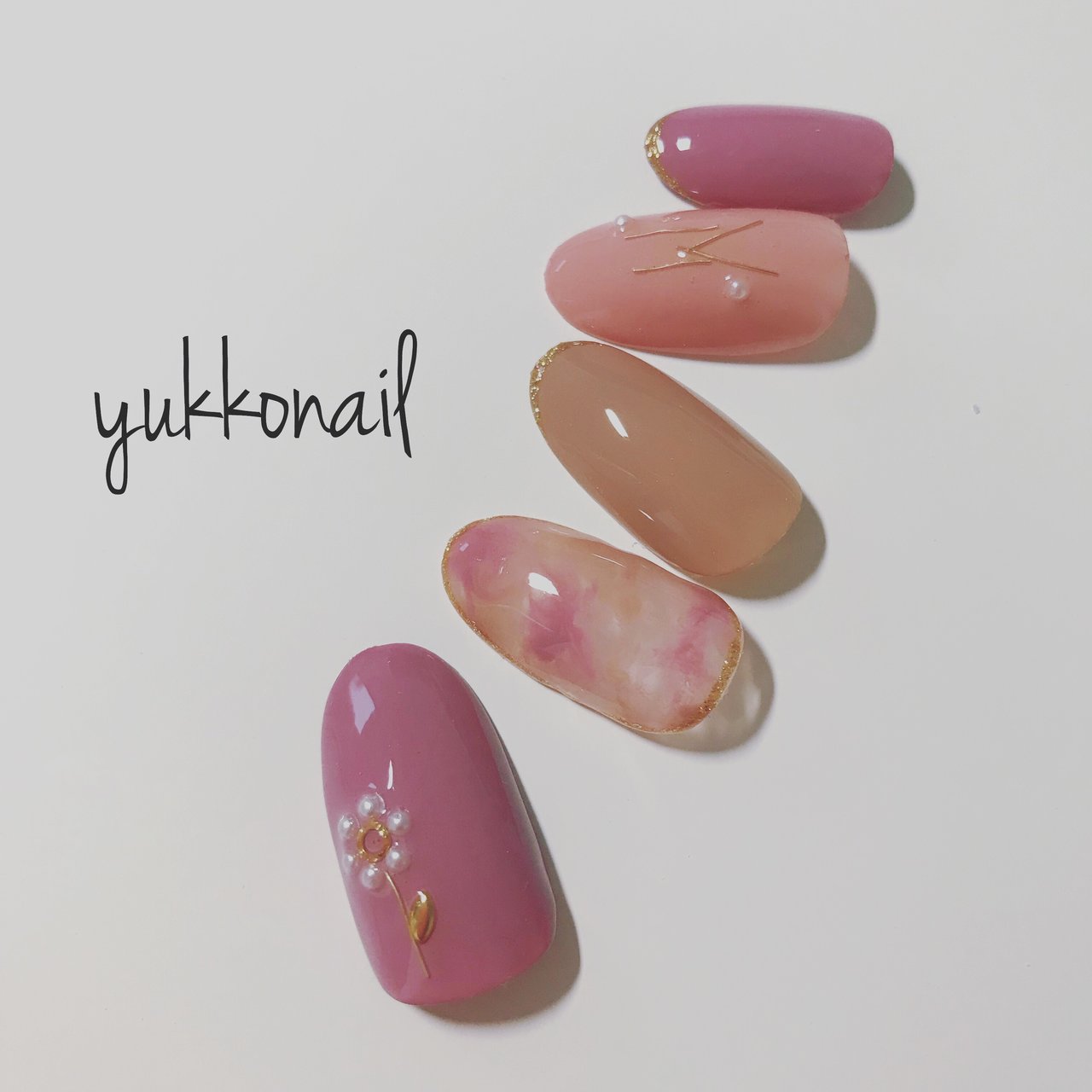 フラワー タイダイ マーブル ピンク ブラウン Yukko Nailのネイルデザイン No ネイルブック